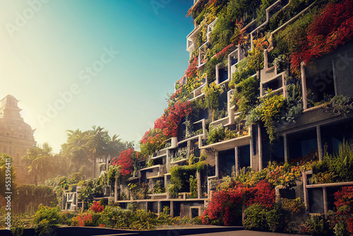 Hanging garden of babylon as fictional digital illustration (Generative AI)