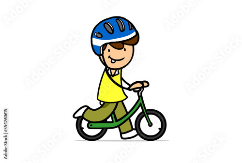 Junge mit Fahrradhelm fährt Kinderfahrrad mit Stützrädern