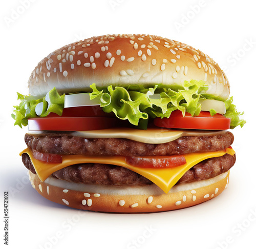 Product shot of fresh big hamburger or cheeseburger with double meat patty as digital illustration (Generative AI)