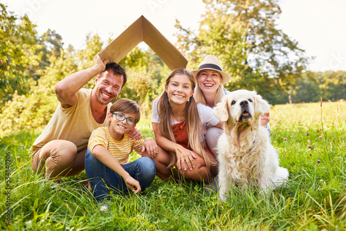 Glückliche Familie mit Zeichnung vom Traumhaus