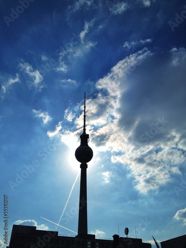 Fernsehturm in Berlin bei Sonnenuntergang als Silhouette