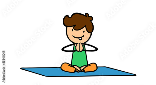 Zufriedener Junge im Lotussitz beim Kinderyoga