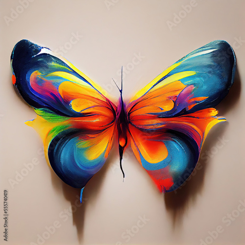 Colorful dripping paint splashes forming butterfly (Generative AI)