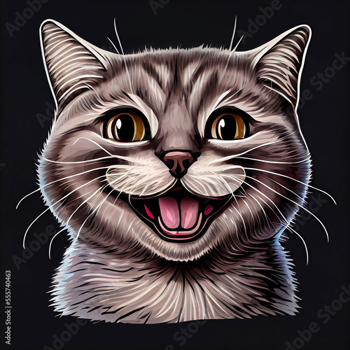 Cute happy cat laughing as dugutal drawing (Generative AI)