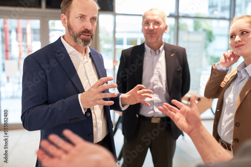 Geschäftsleute in einer Kaffeepause beim Smalltalk