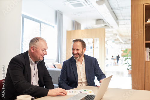 Zwei Geschäftsleute als Kollegen im lockeren Gespräch