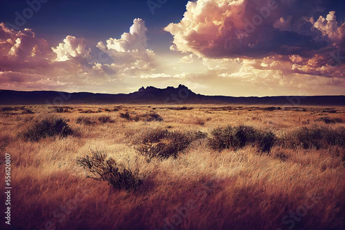 Beautiful remote texas landscape with mountains, dry fields and clouds (Generative AI)