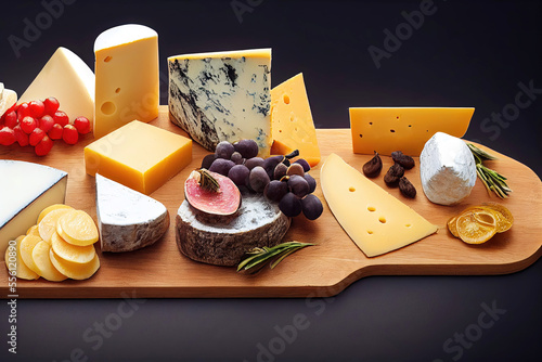 Different types of cheese on cheeseplatter as antipasti selection (Generative AI)