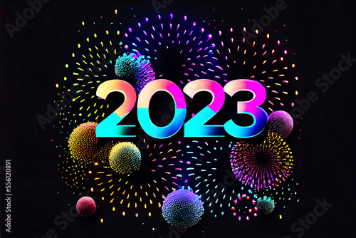 Happy New Year 2023 celebration with colorful fireworks (Generative AI)
