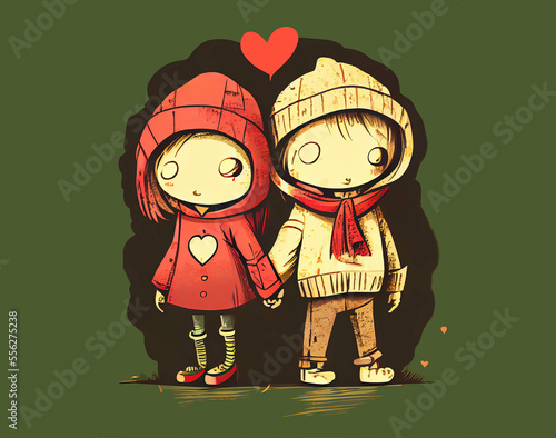 Two kids in love holding hands as romantic valentines day couple (Generative AI)