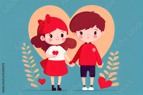Boy and girl in love holding hands on valentines day (Generative AI)