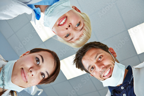 Zahnarzt und Zahnarzthelferin schauen von oben