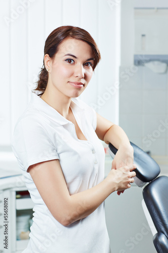 Junge Zahnarzthelferin in Zahnarztpraxis