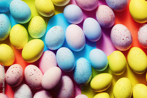 Colorful easter eggs wallpaper background illustration (Generative AI)