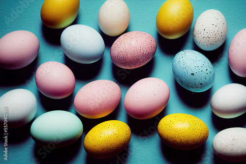 Top view of many small colorful easter eggs (Generative AI)