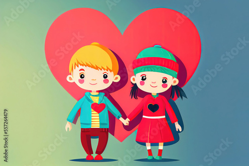 Cute couple in love holding hands on Valentine`s Day (Generative AI)