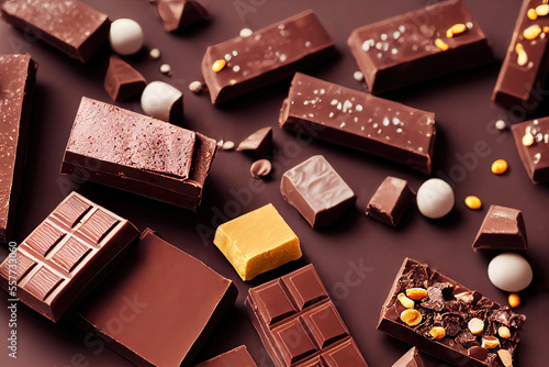 Top view of chocolate bars as candy wallpaper illustration (Generative AI)