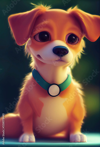 Cute adorable dog as 3d cartoon character with collar
