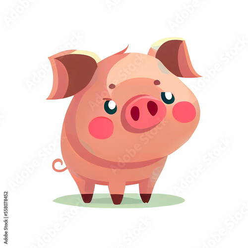 Pink cartoon pig as flat animal illustration (Generative AI)