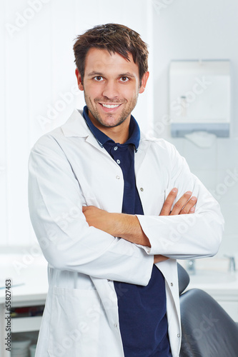 Smiling dentist with arms crossed