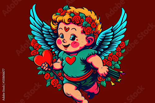 Cute cartoon cupid as love angel for Valentine's Day (Generative AI)