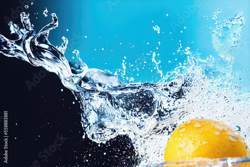 Fresh lemon splashing in water as abstract background illustration (Generative AI)