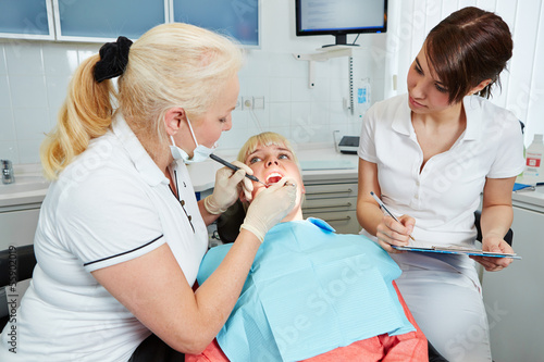Zahnarzthelferin in Ausbildung lernt beim Zahnarzt