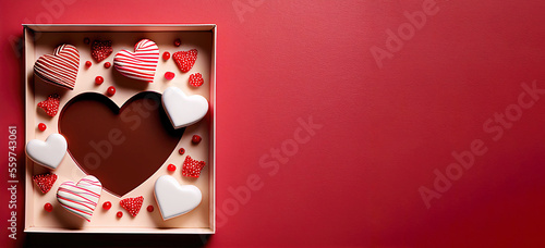Box filled with heart shaped chocolate pralines as Valentines Day gift (Generative AI)