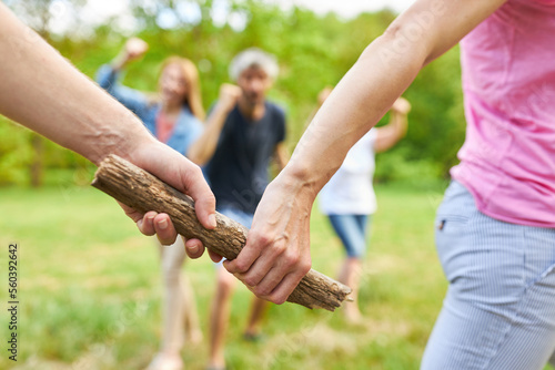 Junge Leute beim Kräftemessen auf dem Teamevent