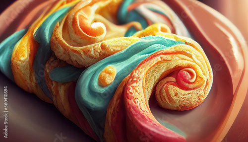 Colorful cake batter cream swirls as abstract food background (Generative AI)