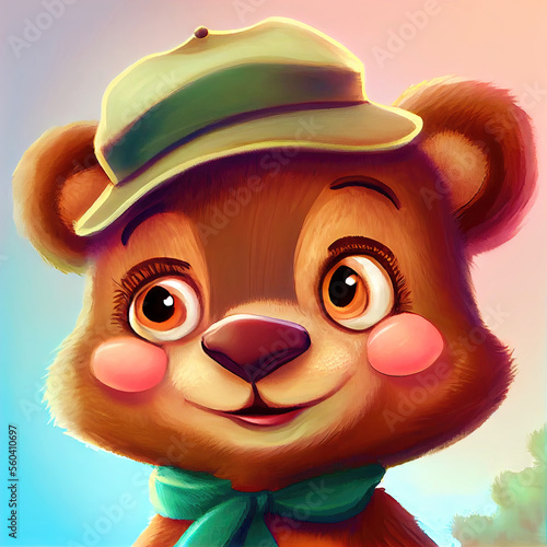 Cute teddy bear cub with glasses as cartoon character (Generative AI)