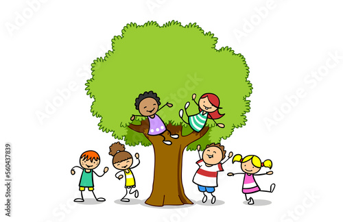 Gruppe Kinder an Baum als Umweltschutz Konzept