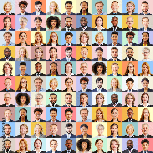 Quadrat Collage aus bunten Portraits von Menschen in vielen Berufen