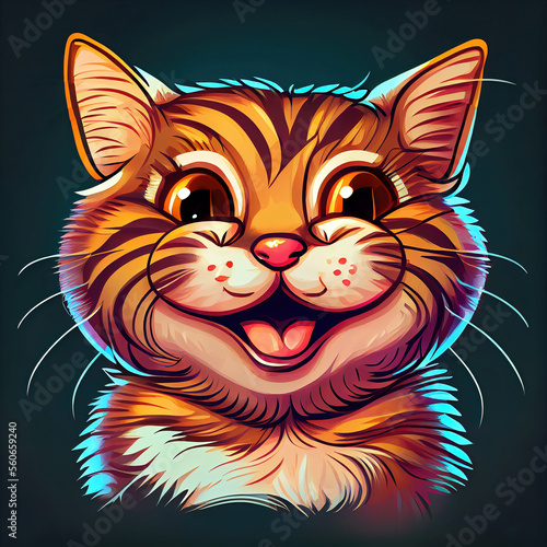 Head of happy smiling cartoon cat as digital illustration (Generative AI)