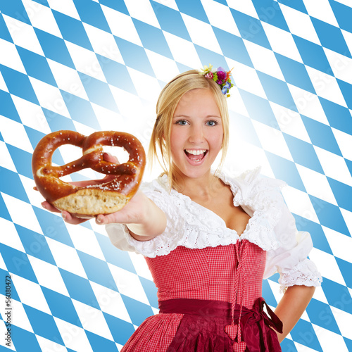 Mann und Frau mit Bier und Brezel zum Oktoberfest