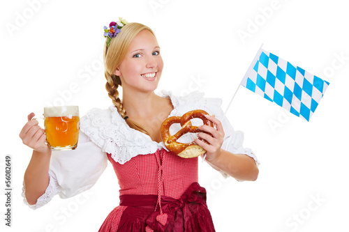 Mann und Frau mit Bier und Brezel zum Oktoberfest