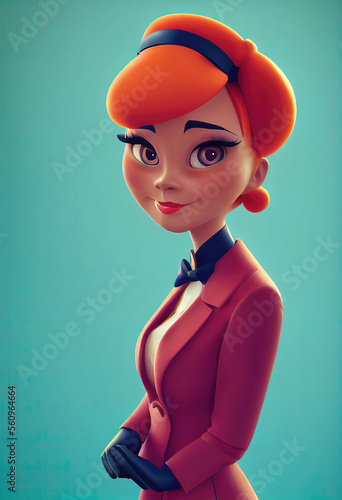 Cute fictional businesswoman as 3d cartoon character illustration (Generative AI)