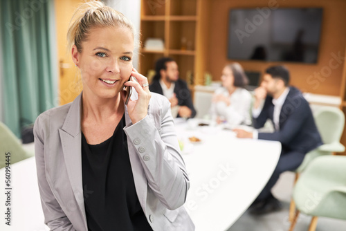 Young businesswoman talking on the cellphone in the office