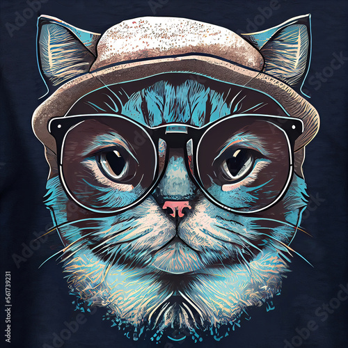 Funny hipster cat with hat and eyeglasses (Generative AI)