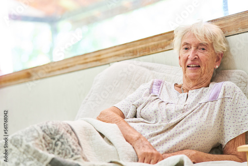 Smiling senior woman as a bedridden patient in bed