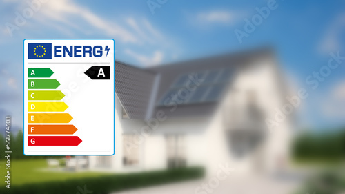 Eigenheim mit Energie Label Grafik als Effizienz Konzept