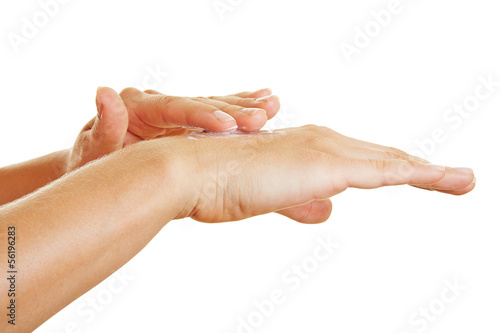 Hände beim Eincremen mit Lotion