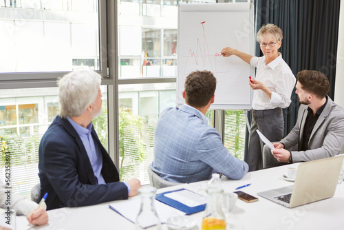 Referentin am Flipchart bei Analyse eines Diagramms