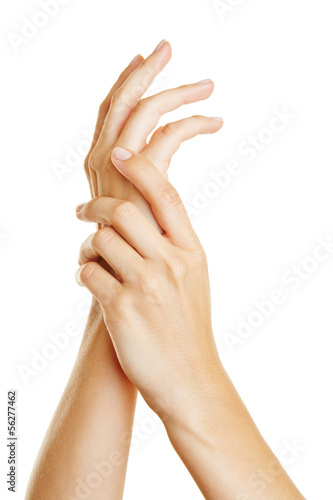 Hände cremen sich ein mit Feuchtigkeitscreme