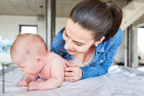 Mutter und neugeborenes Baby auf dem Wickeltisch