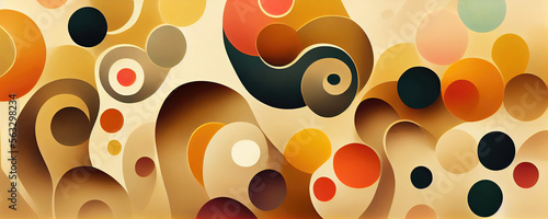 Colorful dots and circles as abstract panorama background (Generative AI)