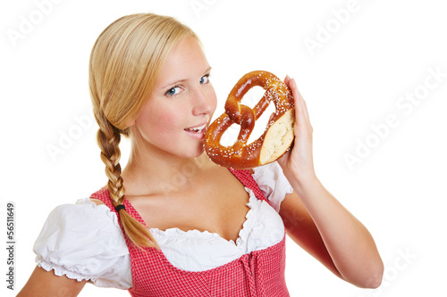 Mann und Frau mit Bier und Brezel zum Oktoberfest