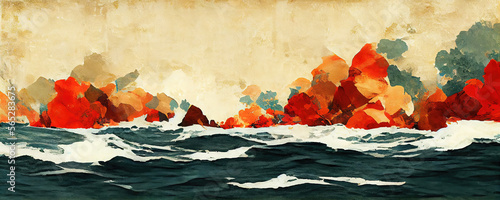 Ocean waves as abstract landscape background illustration (Generative AI)
