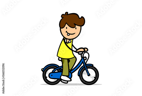 Cartoon kid on kid bike riding bicycle