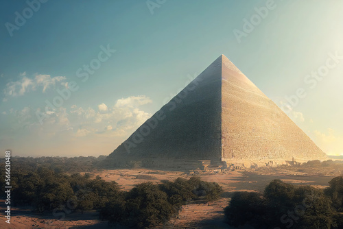 Ancient pyramids in sunny desert landscape (Generative; ai;